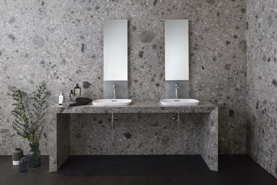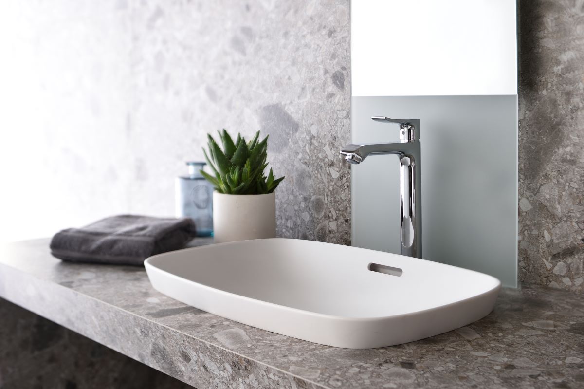 Chậu rửa mặt dương vành của thương hiệu Yoshimoto Global có bề mặt trắng mờ hiện đại. Chậu nổi bật với đường viền mỏng, sắc nét nhờ làm bằng vật liệu đá cẩm thạch nhân tạo BMC chỉ dày 6mm nhưng khó nứt mẻ và chống va đập vượt trội.