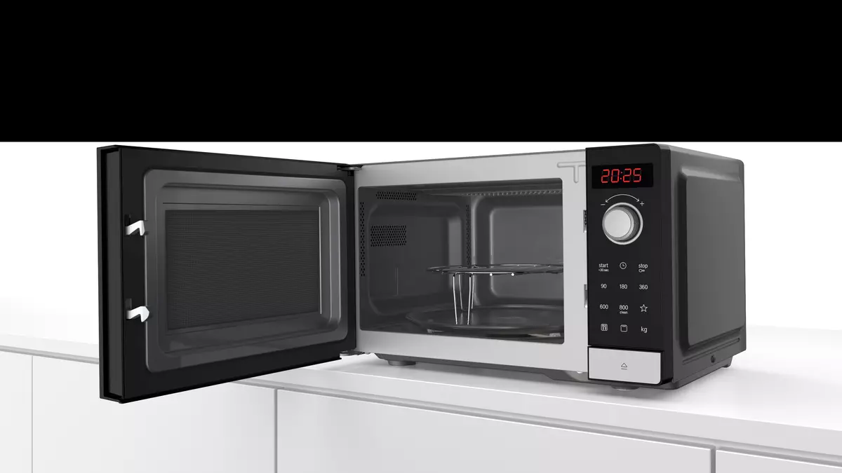 - Thiết Kế Tinh Tế: Lò vi sóng Bosch FEL053MS1M sở hữu thiết kế hiện đại với tông màu đen sang trọng, phù hợp với mọi không gian bếp.